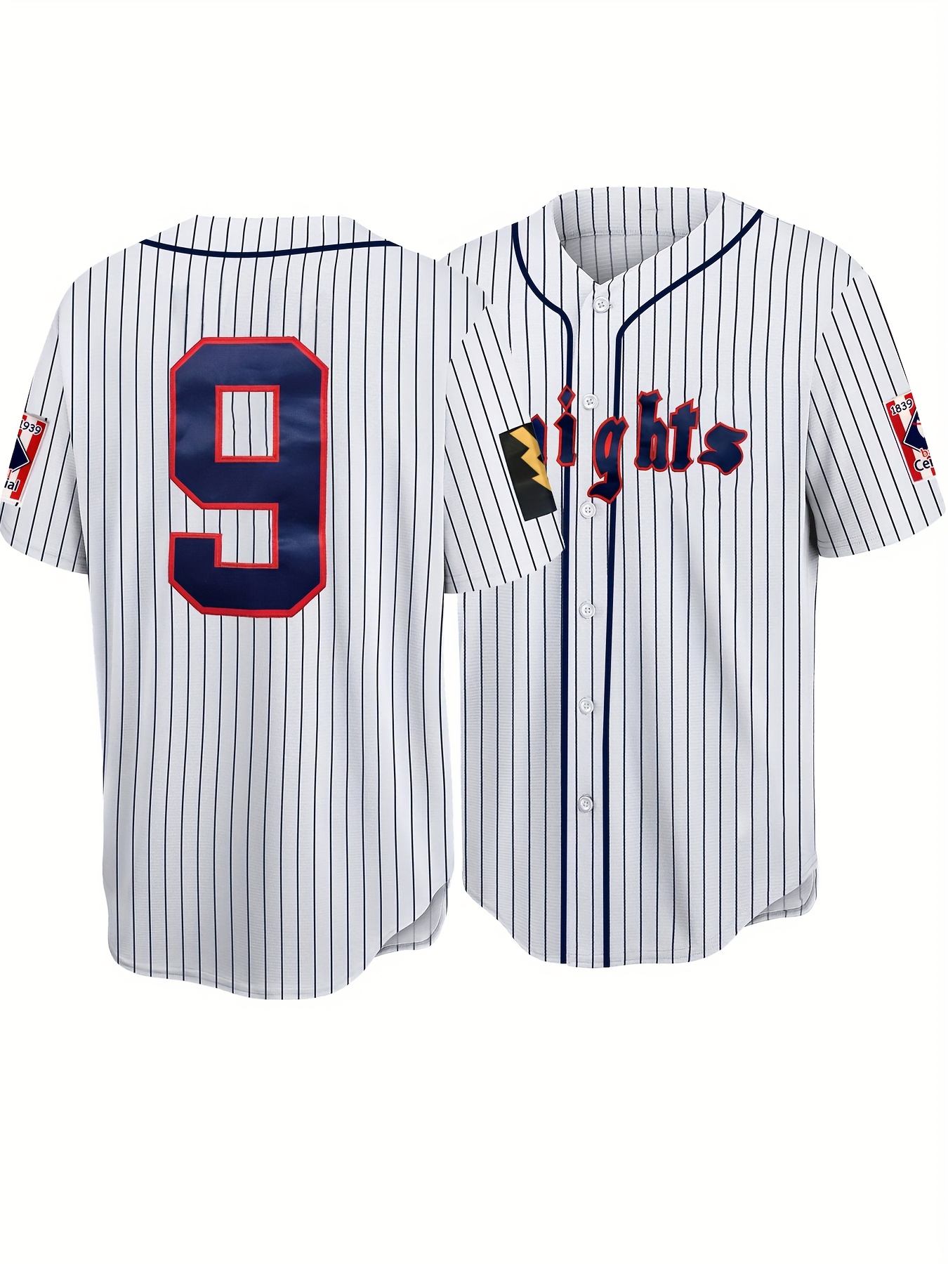 Men's #9 Baseball Jersey - Breathable V-Neck Button-Up Shirt with "NIGHTS" Design, Loose Fit for Training, Competition & Casual Wear | All-Season Comfort, Machine Washable, Adult & Youth Sizes
